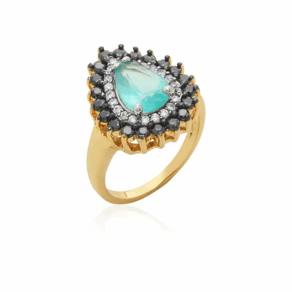 ANEL EM FORMATO DE GOTA COM PEDRA CENTAL E CRAVAÇÃO EM ZIRCÔNIA